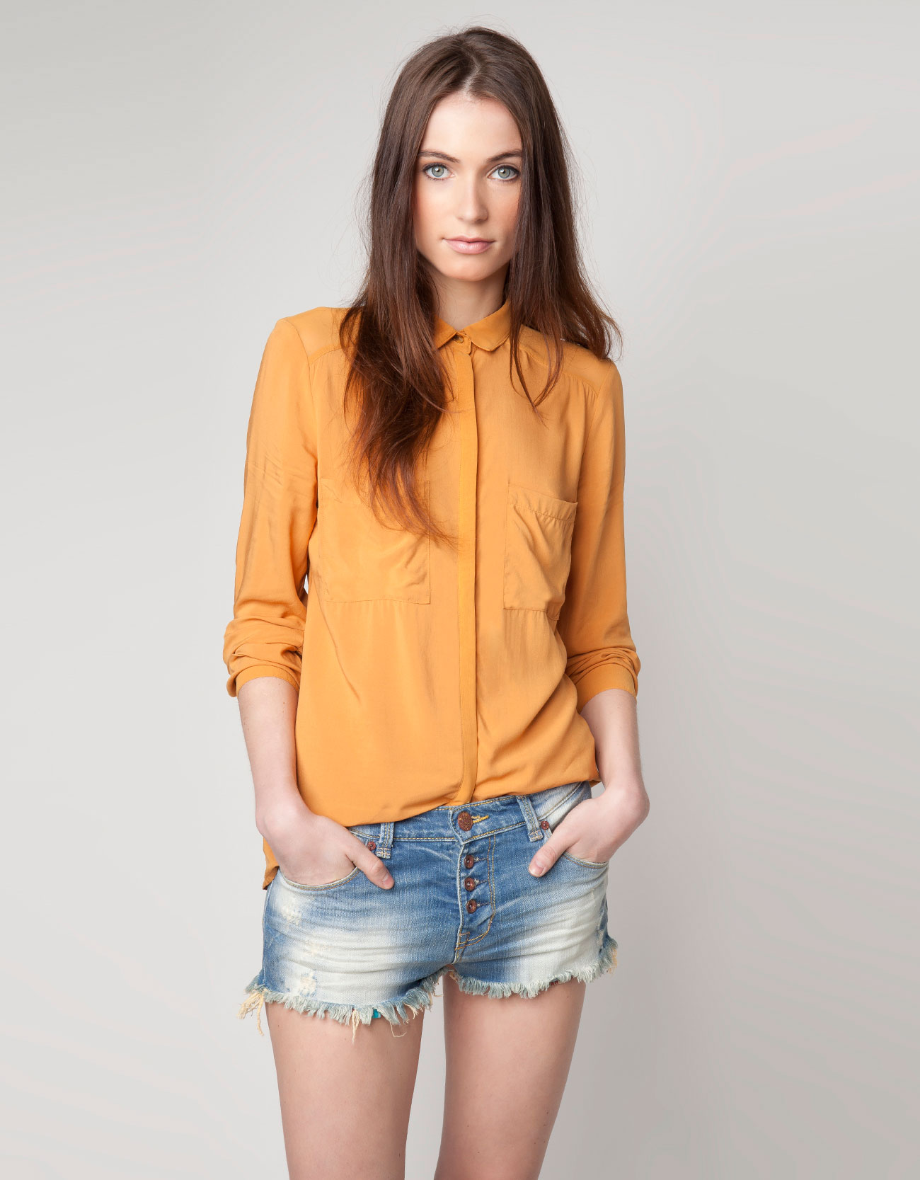 Top con tachas en el escote que forman un cuello bebé, tan de moda estas últimas temporadas, 15.99€, de BSK BERSHKA. La blusa que lleva María es un poco más lady, y tiene el detalle del cuello en brilli brilli, pero este, aunque más informal, no está nada mal tampoco, ¿qué os parece?